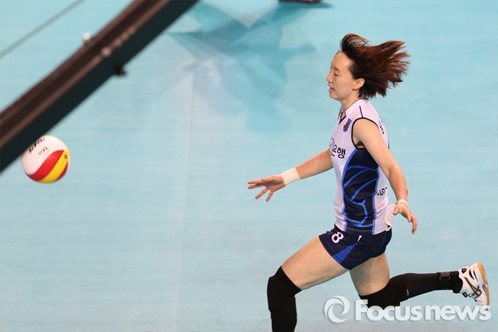 (화성=포커스뉴스) 17일 화성실내체육관에서 열린 2015-2016 V-리그 여자부 챔피언결정전 1차전 IBK기업은행-현대건설 경기에서 IBK기업은행 리베로 남지연이 아웃되는 볼을 살리려 달려가고 있다.