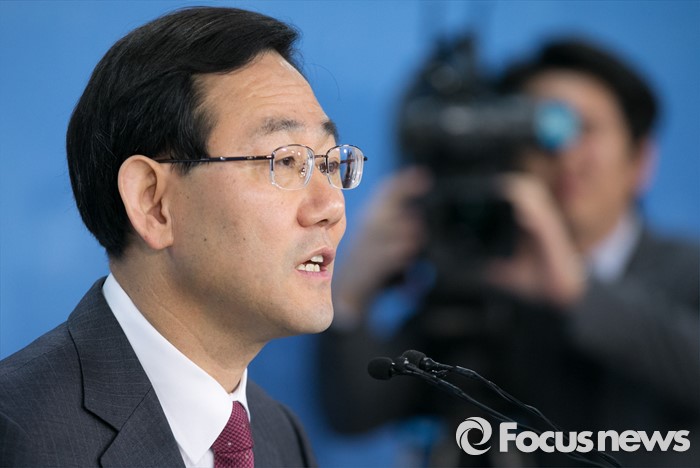(서울=포커스뉴스) 공천 탈락한 주호영 새누리당 의원이 18일 오전 서울 여의도 국회 정론관에서 최고위원회의 재심 요구를 반려한 이한구 공천관리위원장과 관련 기자회견을 하고 있다.
