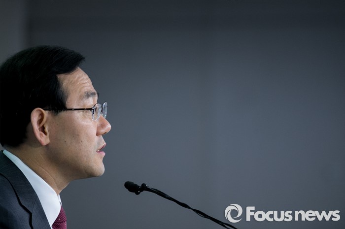 (서울=포커스뉴스) 공천 탈락한 주호영 새누리당 의원이 18일 오전 서울 여의도 국회 정론관에서 최고위원회의 재심 요구를 반려한 이한구 공천관리위원장과 관련 기자회견을 하고 있다.