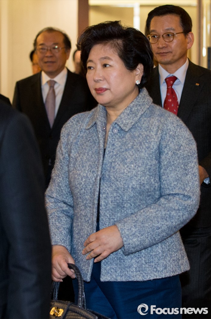 한편 이번 주총에서 현대상선 등기이사직에서 물러난 현정은 현대그룹 회장은 지난달 300억원 사재출연을 약속하고 대주주로서 현대상선의 회생을 위해 백의종군하겠다는 방침을 밝혔다.(서울=포커스뉴스) 10일 오전 서울 중구 대한상공회의소에서 열린 국세청장 초청 전국상의 회장단 정책간담회에 참석한 현정은 현대그룹 회장이 간담회장으로 발걸음을 옮기고 있다. 2016.03.10 양지웅 기자