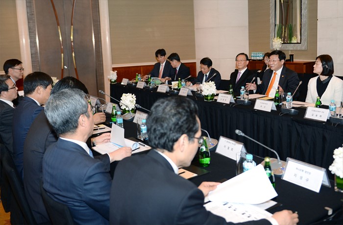이날 간담회에는 장원기 중국삼성 사장, 이병호 현대자동차그룹 부사장, 조영호 SK 부사장, 이철희 CJ그룹 중국본사 부사장, 한성희 POSCO CHINA 전무, 지성규 하나은행 법인장, 이호경 대우인터내셔널 상무, 송철호 북경한미약품 부회장, 최 선 미샤화장품 총경리, 정광영 KOTRA 중국지역본부장이 참석했다. <사진제공=산업통상자원부>