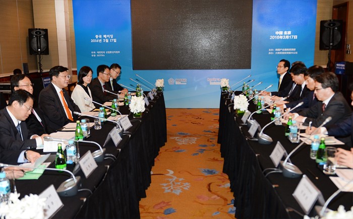 이날 간담회에는 장원기 중국삼성 사장, 이병호 현대자동차그룹 부사장, 조영호 SK 부사장, 이철희 CJ그룹 중국본사 부사장, 한성희 POSCO CHINA 전무, 지성규 하나은행 법인장, 이호경 대우인터내셔널 상무, 송철호 북경한미약품 부회장, 최 선 미샤화장품 총경리, 정광영 KOTRA 중국지역본부장이 참석했다. <사진제공=산업통상자원부>