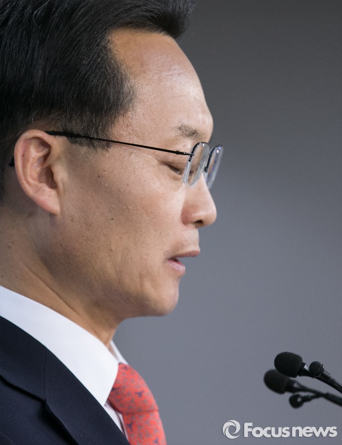 (서울=포커스뉴스) 공천 탈락한 조해진 새누리당 의원이 18일 오전 서울 여의도 국회 정론관에서 탈당 및 20대 총선 무소속 출마 기자회견을 하고 있다.