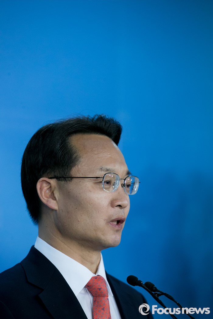 (서울=포커스뉴스) 공천 탈락한 조해진 새누리당 의원이 18일 오전 서울 여의도 국회 정론관에서 탈당 및 20대 총선 무소속 출마 기자회견을 하고 있다.