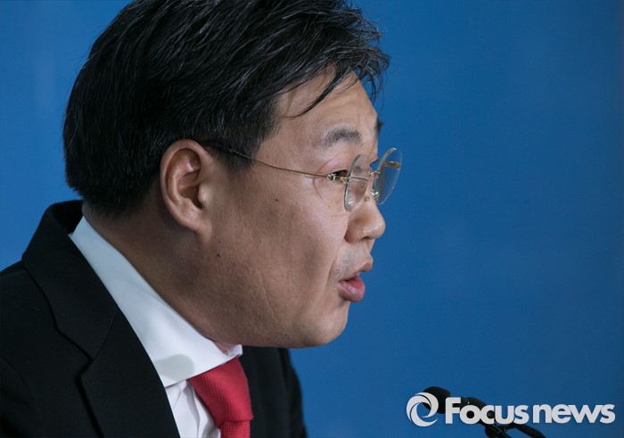 (서울=포커스뉴스) 새누리당 20대 총선 후보 경선에서 탈락한 정문헌 의원이 18일 오전 서울 여의도 국회 정론관에서 여론조사 등과 관련 당 공천관리위원회의 발표에 이의를 제기하는 기자회견을 하고 있다.