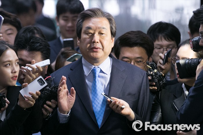(서울=포커스뉴스) 김무성 새누리당 대표가 18일 오전 서울 여의도 국회에서 열린 비공개 최고위원회의를 마친 뒤, 기자들의 질문을 들으며 밖으로 나가고 있다.
