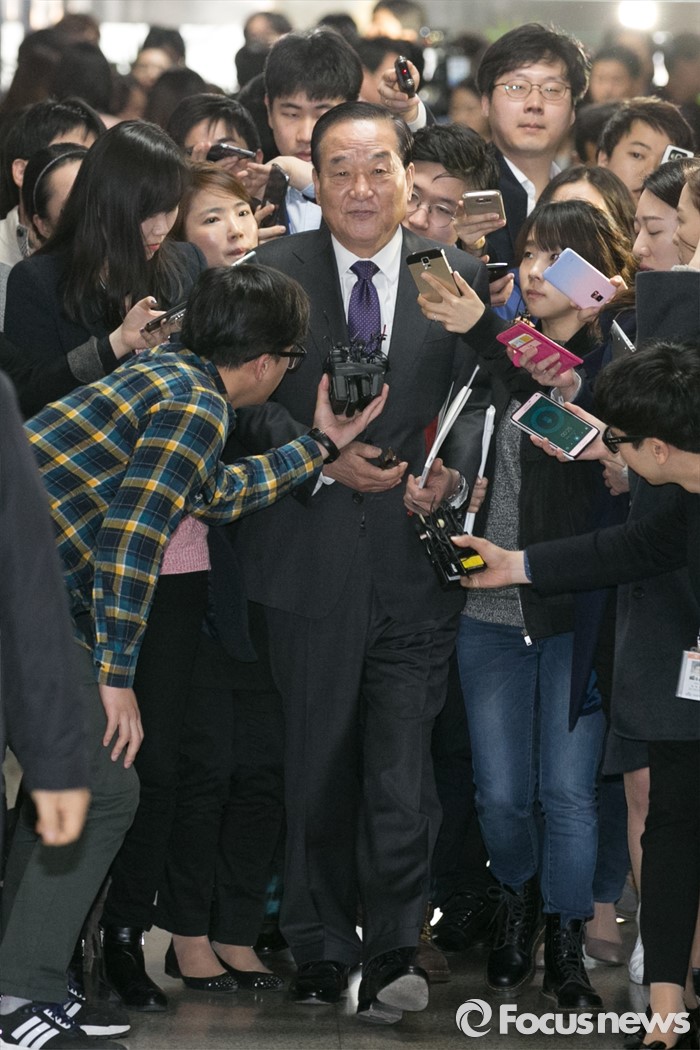 (서울=포커스뉴스) 서청원 새누리당 최고위원이 18일 오전 서울 여의도 국회에서 열린 비공개 최고위원회의를 마친 뒤, 기자들의 질문을 들으며 밖으로 나가고 있다.