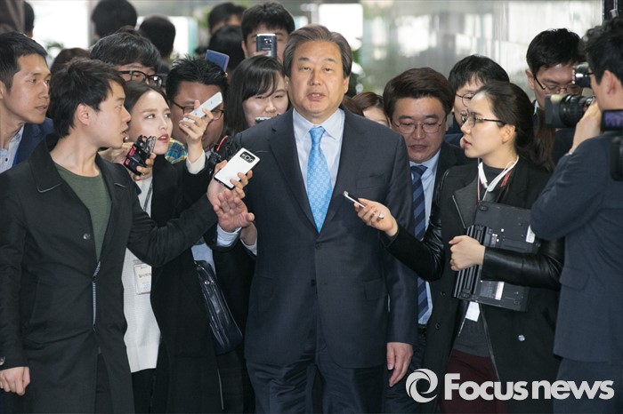 (서울=포커스뉴스) 김무성 새누리당 대표가 18일 오전 서울 여의도 국회에서 열린 비공개 최고위원회의를 마친 뒤, 기자들의 질문을 들으며 밖으로 나가고 있다.