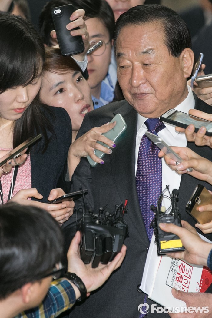 (서울=포커스뉴스) 서청원 새누리당 최고위원이 18일 오전 서울 여의도 국회에서 열린 비공개 최고위원회의를 마친 뒤, 기자들의 질문을 들으며 밖으로 나가고 있다.