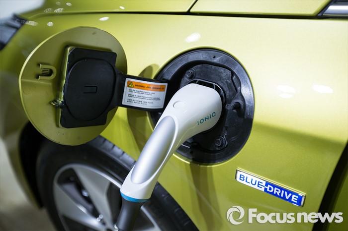 (제주=포커스뉴스) 18일 오전 제주 서귀포 제주국제컨벤션센터에서 열리고 있는 2016 국제전기자동차엑스포에서 현대 전기자동차 '아이오닉'의 두번째 차량 '아이오닉 일렉트릭'의 충전 모습