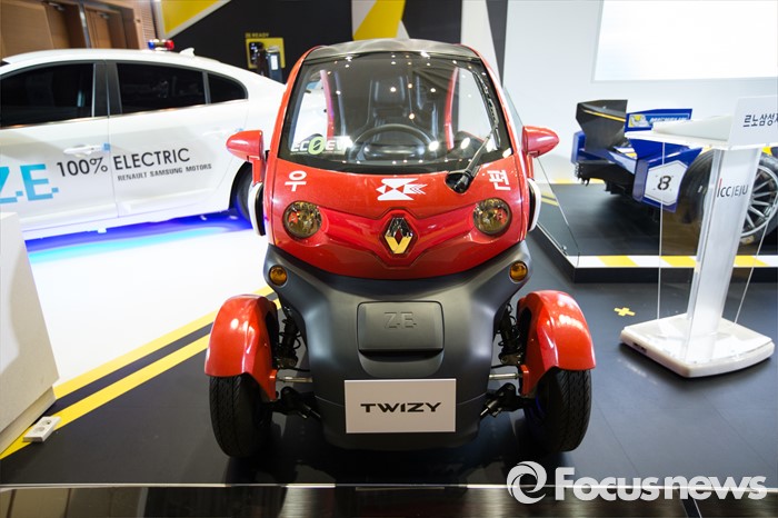 (제주=포커스뉴스) 18일 오전 제주 서귀포 제주국제컨벤션센터에서 열리고 있는 2016 국제전기자동차엑스포에 르노삼성의 초소형전기자동차 '트위지(Twizy)'가 전시 되어 있다.