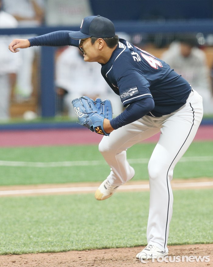 (서울=포커스뉴스) 18일 서울 고척스카이돔에서 열린 2016 프로야구 시범경기 두산-넥센 경기 6회말 두산 투수 강동연이 구원 등판해 힘차게 투구하고 있다.