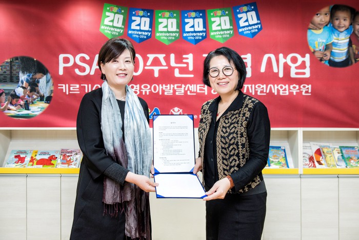 그 일환으로 18일 서울 강남 개포PSA에서 국제 구호개발 NGO(비정부기구)인 세이브더칠드런과 '키르기스스탄의 ECD 지원사업'을 후원하는 협약을 맺고 후원금 5000만원을 전달했다.
