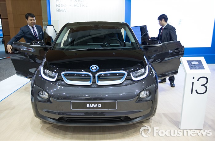 (제주=포커스뉴스) 18일 오전 제주 서귀포 제주국제컨벤션센터에서 열리고 있는 2016 국제전기자동차엑스포에 BMW 'i3'가 전시되어 있다.