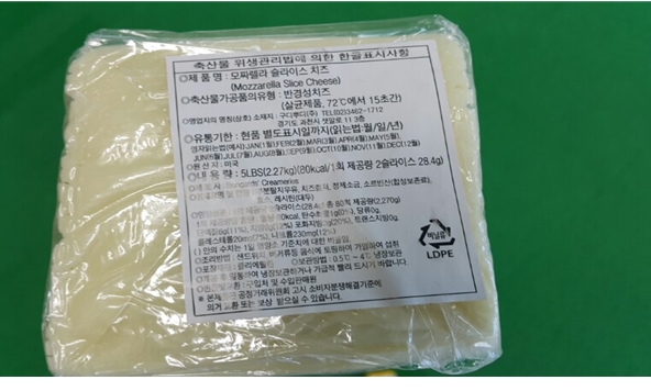 회수 대상은 유통기한이 2016년 4월5일인 ‘모짜렐라 슬라이스 치즈’ 제품으로 원래 유통기한을 약 9개월 연장해 표시됐다.