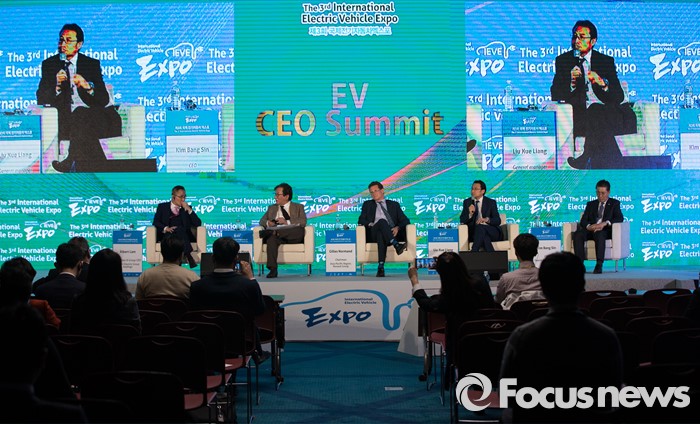 (제주=포커스뉴스) 18일 오후 제주 서귀포 제주국제컨벤션센터에서 열린 2016 국제전기자동차엑스포에서 'EV CEO Summit'이 열리고 있다.