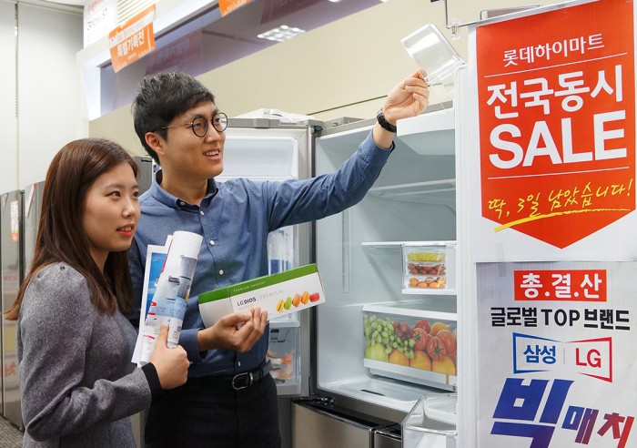 롯데하이마트 문주석 마케팅 부문장은 "글로벌 톱 브랜드의 인기 가전을 합리적으로 구매할 수 있는 기회가 되길 기대한다"고 말했다.전국동시세일 기간 롯데하이마트 매장을 찾은 한 방문객이 제품을 살펴보고 있다.<사진제공=롯데하이마트>