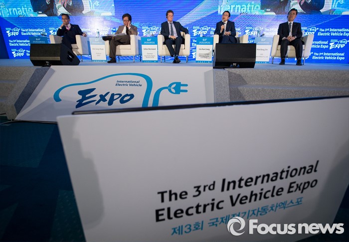 (제주=포커스뉴스) 18일 오후 제주 서귀포 제주국제컨벤션센터에서 열린 2016 국제전기자동차엑스포에서 'EV CEO Summit'이 열리고 있다.