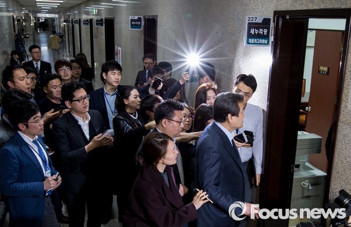 (서울=포커스뉴스) 김무성 새누리당 대표가 18일 오후 서울 여의도 국회 대표최고위원실에서 열린 최고위원회의에 참석하고 있다.
