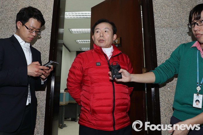 | △ 취재진 질문 답하는 이인제 |