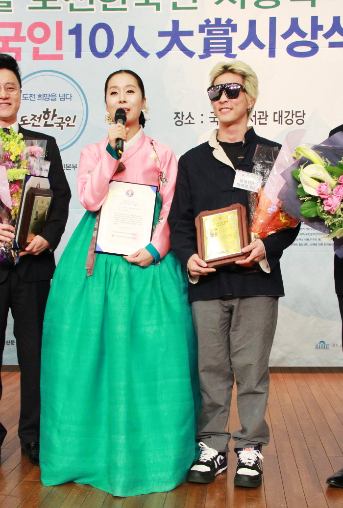 팝핀현준과 박애리는 “열심히 해서 더욱 더 대한민국을 빛낼 수 있는 공연예술가로 발전하겠다”며 “전통과 현대가 하나 되는 무대로 세계에서 멋진 공연예술 보여드리도록 하겠다”고 수상소감을 밝혔다.가수 팝핀현준, 국악인 박애리 부부가 18일 서울 국회도서관 대강당에서 개최된 ‘제 5회 도전한국 대상’에서 ‘2016년을 빛낼 도전 한국인’의 공연예술부분에 선정됐다. <사진제공=해피페이스 엔터테인먼트>