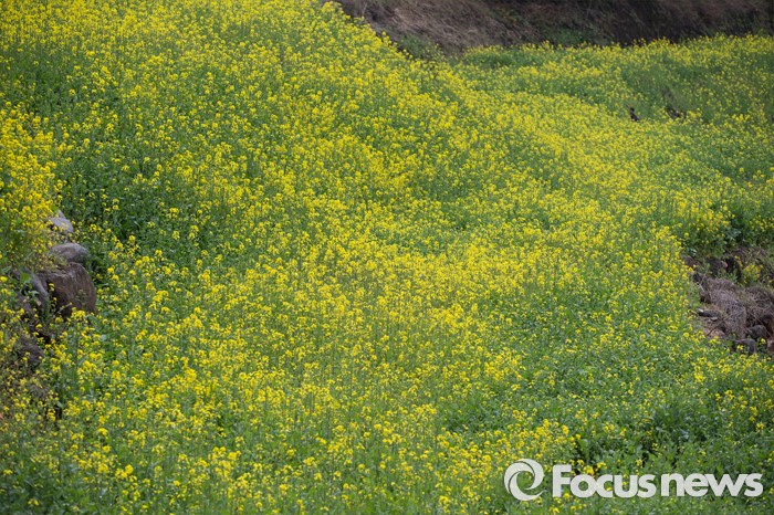 (제주=포커스뉴스)19일 오전 제주 서귀포 중문관광단지 일원에서 제18회 서귀포 유채꽃 국제걷기대회가 열리고 있는 가운데 만개한 유채꽃이 보이고 있다.