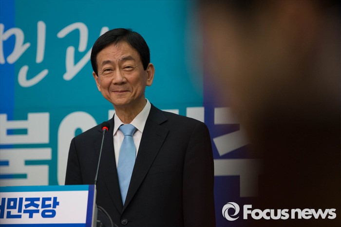 (서울=포커스뉴스) 새누리당에서 공천 배제된 뒤 탈당한 진영 의원이 20일 오전 서울 여의도 국회에서 더불어민주당 공식 입당을 알리는 기자회견을 하고 있다.