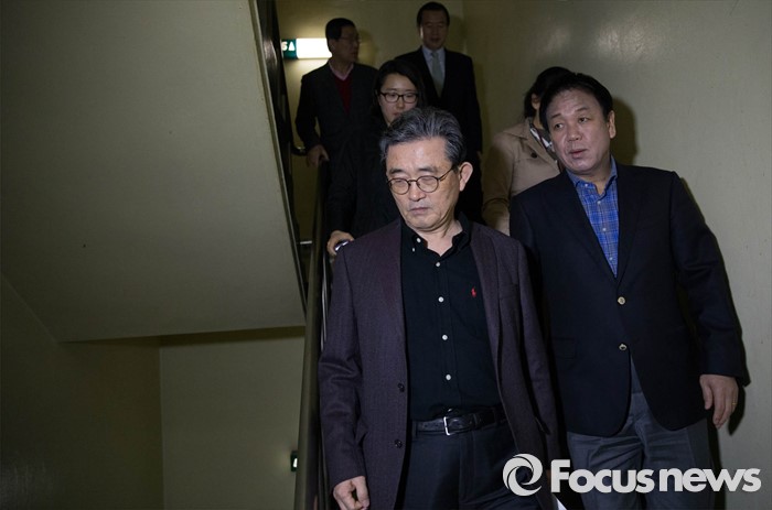 (서울=포커스뉴스) 새누리당 이한구 공관위원장이 20일 오후 제20대 총선 공천경선지역 여론조사 발표를 위해 여의도에 위치한 새누리당 당사 기자회견장으로 들어서고 있다.