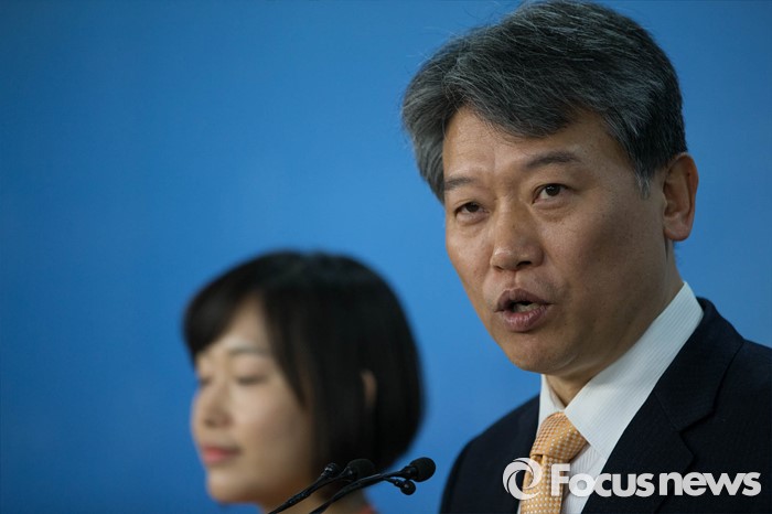 (서울=포커스뉴스) 김선동 전 통합진보당 의원이 20일 오후 서울 여의도 국회에서 기자회견을 열고 민주연합당 입당을 발표하고 있다.