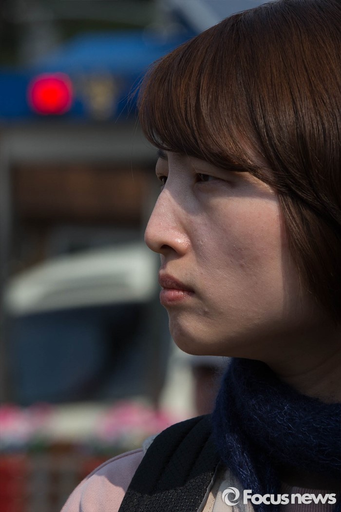 (서울=포커스뉴스) 20일 오후 서울 종로구 청운동사무소 인근에서 백도라지씨가 경찰벽에 막혀 1인 시위를 못하고 있다. 이날 백씨는 지난해 11월 집회 도중 물대포에 맞아 쓰러진 아버지 백남기씨 사건에 대한 경찰당국의 정확한 수사와 사과를 촉구했다.
