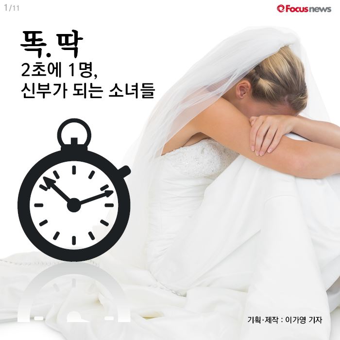 (서울=포커스뉴스) 전세계에 7억명의 소녀들이 경제적 어려움 때문에 학업도 포기하고 강제로 조혼을 했습니다. 지금도 2초마다 1명씩 어린 신부들이 면사포를 쓰고 있습니다. 소녀의 꿈을 빼앗는 잔인한 일이 개발도상국에서만 일어나는 일은 아닙니다.