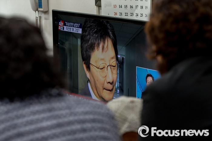 ▶▶ 4·13 총선 주요 공천자 및 경선지역 보러가기 ◀◀새누리당이 유승민(대구 동구을) 의원에 대한 공천 배제안을 놓고 고민하고 있는 16일 오후 대구 동구 유 의원 선거사무소에 모인 지지자들이 뉴스를 시청 하고 있다. 2016.03.16 강진형 기자
