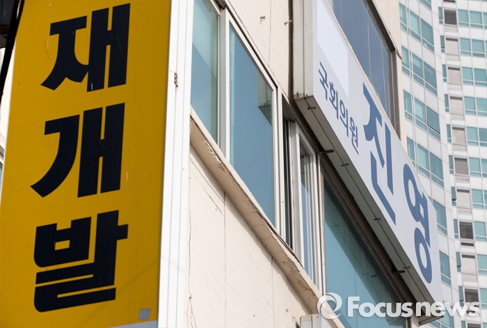 (서울=포커스뉴스) 21일 오전 서울 용산구 진영 의원 지역구 사무실 간판의 정당과 기호 표시가 가려져 있다. 진 의원은 새누리당에서 공첸 배제된 뒤 탈당해 더불어민주당으로 입당했다.