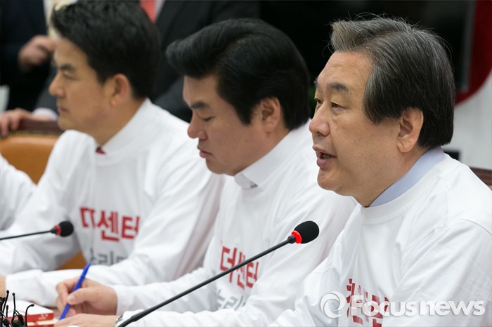 (서울=포커스뉴스) 김무성(오른쪽) 새누리당 대표가 21일 오전 서울 여의도 국회에서 열린 최고위원회의에 참석해 모두발언하고 있다.