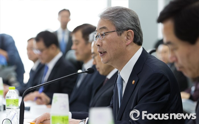 (서울=포커스뉴스) 21일 오전 서울 종로구 더케이트윈타워에서 열린 '인터넷은행 현장간담회'에 참석한 임종룡(오른쪽 두번째) 금융위원장이 모두발언 하고 있다.