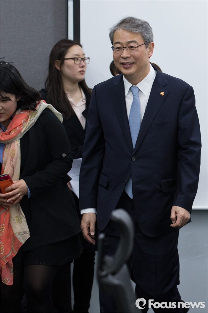 (서울=포커스뉴스) 임종룡(오른쪽) 금융위원장이 21일 오전 서울 종로구 더케이트윈타워에서 열린 '인터넷은행 현장간담회'에 참석하고 있다.
