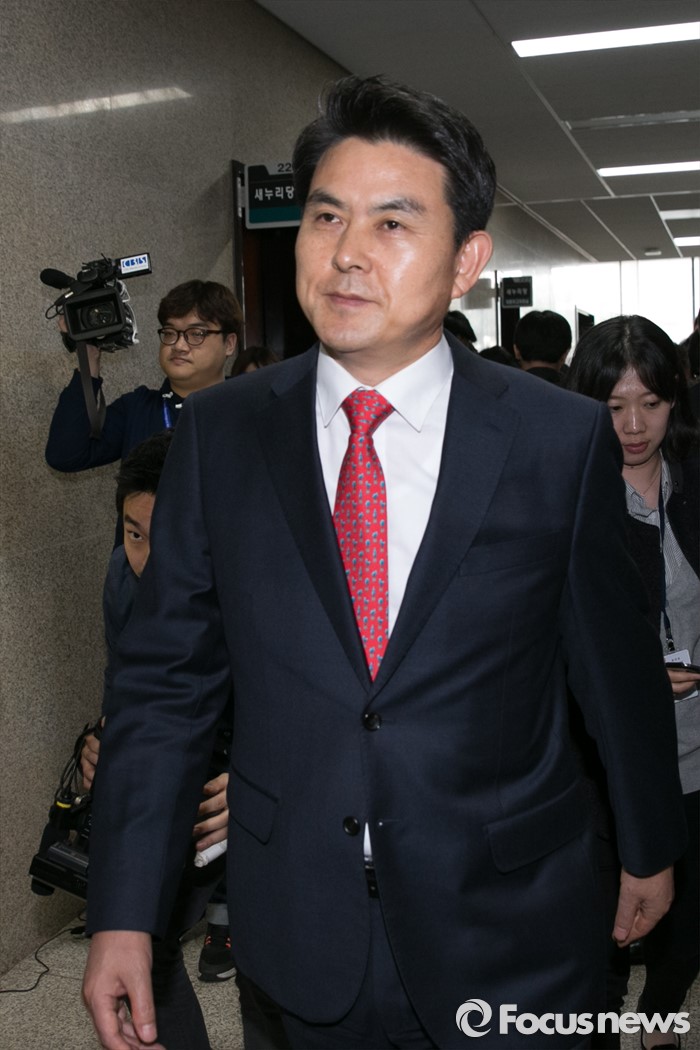 (서울=포커스뉴스) 김태호 새누리당 최고위원이 21일 오전 서울 여의도 국회에서 열린 최고위원회를 마친 뒤, 기자들의 질문을 들으며 밖으로 나가고 있다.