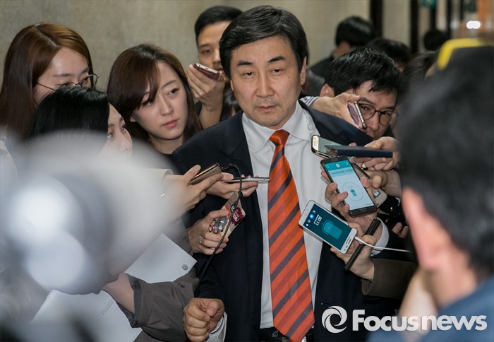 (서울=포커스뉴스) 21일 오전 서울 여의도 국회에서 이종걸 더불어민주당 원내대표가 비례대표 후보 공천 등에 항의하고 있는 전국실버위원회 당원들과 대화를 위해 비대위 대표회의실로 향하고 있다.