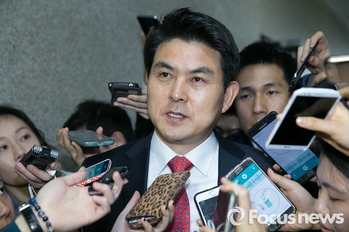 (서울=포커스뉴스) 김태호 새누리당 최고위원이 21일 오전 서울 여의도 국회에서 열린 최고위원회를 마친 뒤, 기자들의 질문을 들으며 밖으로 나가고 있다.