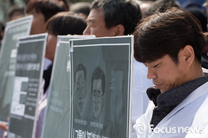 (서울=포커스뉴스) 21일 오전 서울 서초구 현대자동차 본사에서 열린 유성기업 故 한광호 사망 현대자동차 규탄 기자회견에서 유성기업 공대위와 시민사회단체들이 피켓을 들고 있다.