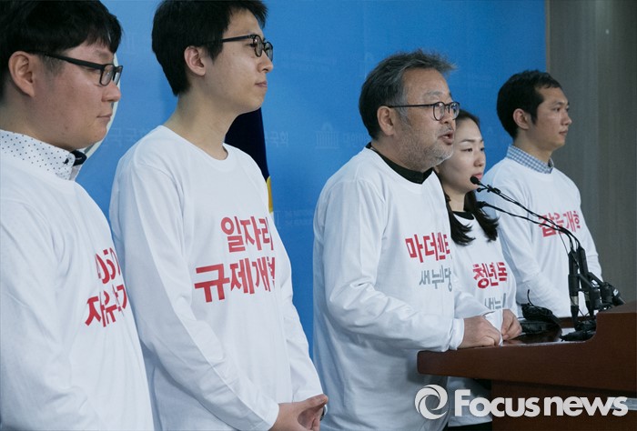(서울=포커스뉴스) 조동원(왼쪽 세번째) 새누리당 홍보기획본부장이 21일 오전 서울 여의도 국회 정론관에서 20대 총선 슬로건 및 홍보전략 발표 등 기자회견을 하고 있다.