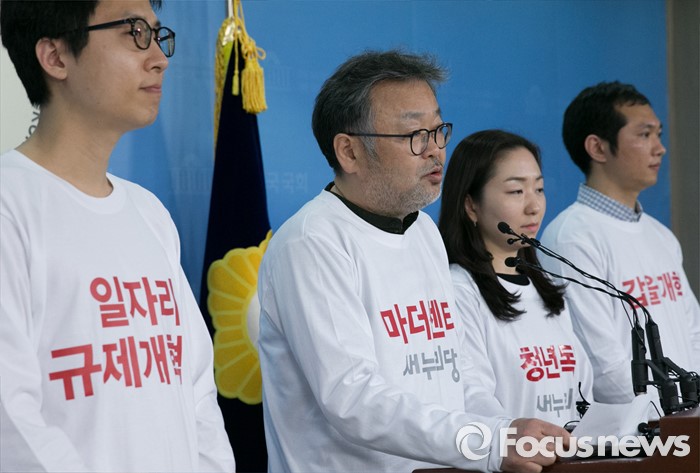 (서울=포커스뉴스) 조동원(왼쪽 두번째) 새누리당 홍보기획본부장이 21일 오전 서울 여의도 국회 정론관에서 20대 총선 슬로건 및 홍보전략 발표 등 기자회견을 하고 있다.