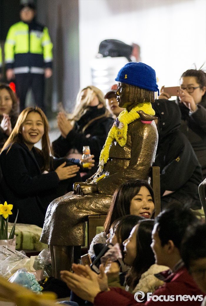 이에 따라 외교부는 당일 오후 3시 스즈키 히데오 주한 일본대사관 총괄공사를 초치해 일본 정부의 왜곡된 고교 교과서 검정 결과 발표에 대해 항의한 바 있다.일본군위안부 피해자 문제 합의 후속조치 이행방안 등을 논의하기 위한 한‧일 국장급 협의가 22일 동경에서 열린다. 사진은 지난 18일 오후 서울 종로구 일본대사관 앞에서 열린 '한일 위안부 합의 폐기, 소녀상 철거 반대 대학생 100인 농성'에 참석한 학생들이 소녀상 곁을 지키고 있는 장면. 2016.03.18 양지웅 기자