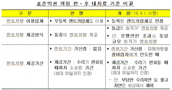 사고 발생 후 제공 렌트차량 및 대차기준 달라져