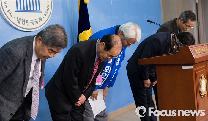 (서울=포커스뉴스) 경기도 용인갑 전략공천된 더불어민주당 백군기 의원이 21일 오후 서울 여의도 국회 정론관에서 기자회견을 마친 후 인사를 하고 있다.