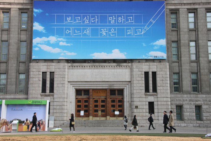 이번 문안은 21일 아침에 첫 선을 보인 뒤 5월까지 서울광장 앞 도서관 정문에 설치될 예정이다.