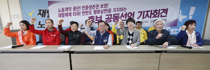 총선을 23일 앞둔 이날 민주노총·정의당·녹색당·노동당·민중연합당 등이 주축이 된 이들은 한 목소리를 냈다.