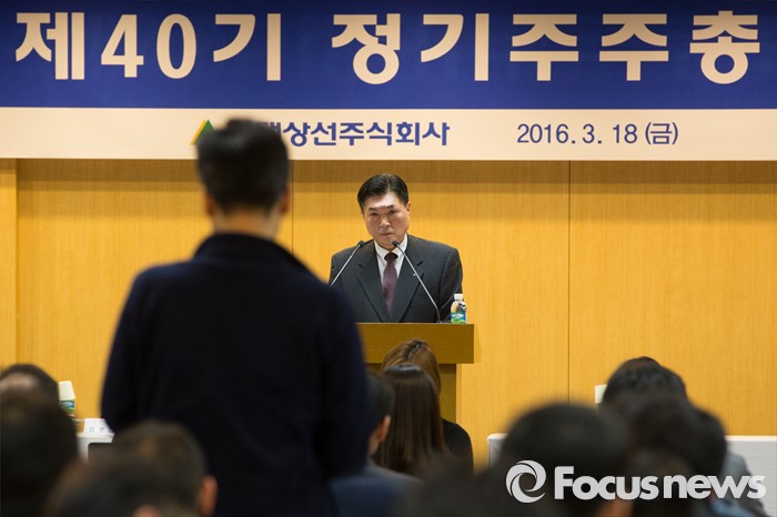 회사 측은 "이는 기업구조조정촉진법상 채권은행 등의 관리절차(워크아웃)에 해당되지 않는다"고 설명했다.(서울=포커스뉴스) 이백훈 현대상선 대표이사가 18일 오전 서울 종로구 현대그룹빌딩에서 열린 제40기 정기주주총회에서 한 주주의 의사발언을 듣고 있다. 2016.03.18 허란 기자