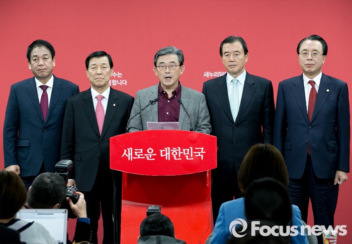 (서울=포커스뉴스) 이한구 새누리당 공천관리위원장과 위원들이 21일 오후 서울 여의도 당사에서 20대 총선 여론조사 경선 결과 발표를 하고 있다. 왼쪽부터 박종희 위원, 황진하 부위원장, 이 위원장, 홍문표, 김회선 위원.