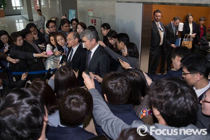 (서울=포커스뉴스) 성 김 미국 국무부 동아태 부차관보 겸 대북정책특별대표와 대니얼 프리드 미국 국무부 제재정책조정관이 21일 오후 서울 종로구 외교부에서 '한미 고위급 대북제재 협의'를 마친 후 취재진의 질문에 답변하고 있다.